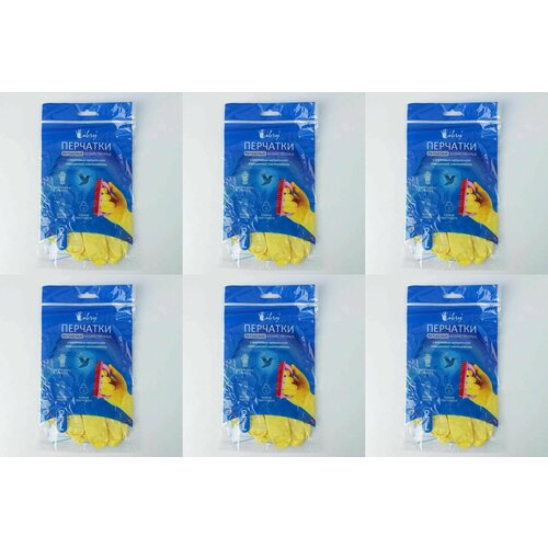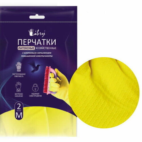 Libry Перчатки латексные хозяйственные с х/б эластичные, желтые, L, 6 уп