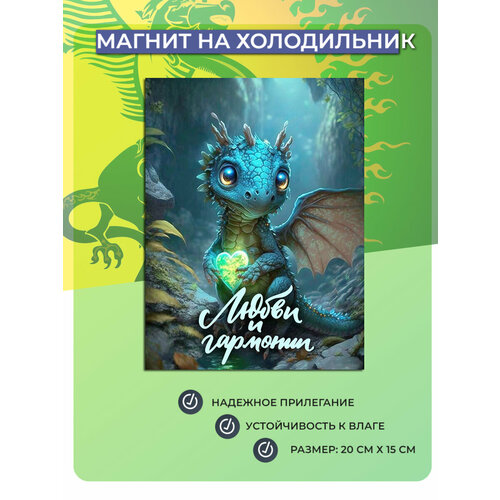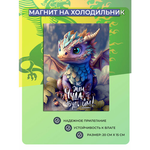 Магнит на холодильник Дракон (20 см х 15 см) Символ года №1