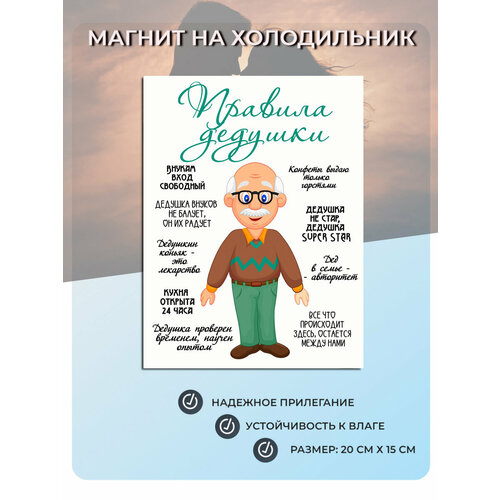 Магнит на холодильник Правила деда (20 см х 15 см) Сувенирный магнит Подарок для дедушки семьи Декор интерьера №5