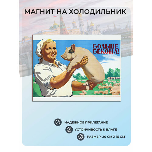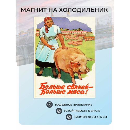 Магнит на холодильник Больше свиней - больше мяса! (20 см х 15 см) Ретро Для дома Для кухни Декор Интерьер №38