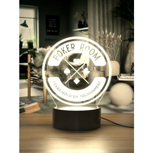 Световая надпись Poker Room / Покер техасский холдем /игроку в покер подарок