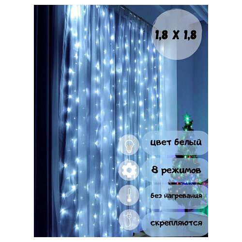 Электрическая светодиодная гирлянда штора 1,5х1,5 м, холодный
