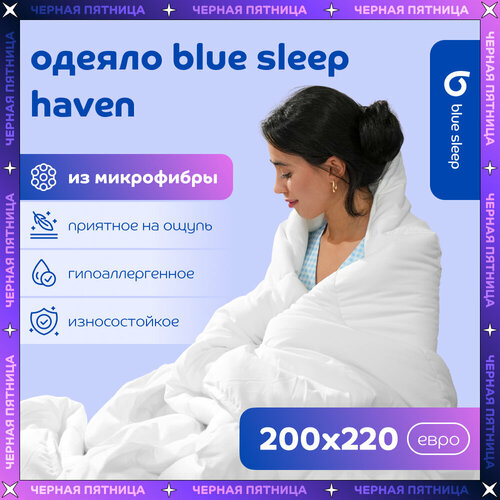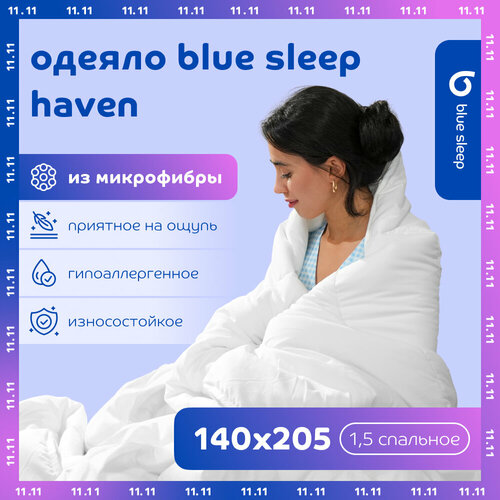 Одеяло 1 5 спальное из микрофибры Blue Sleep Haven, 140х205, гипоаллергенное, всесезонное