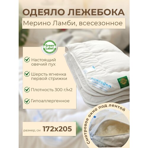 Одеяло лежебока Мерино Ламби 172х205 из 100% пуховой шерсти ягненка мериноса всесезонное, 2953-172-3