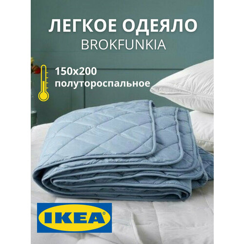 Одеяло IKEA BROKFUNKIA, 1,5 спальное облегченное 150х200см, светло-голубое