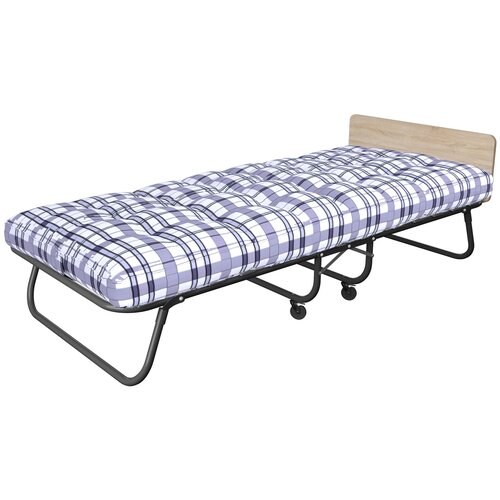 дуб светлый, дубРаскладушка кровать Отель с матрасом - идеальный вариант для тех, кто заботится о своем здоровье. Кровать раскладушка прекрасно впишется в любой интерьер, как в домашнюю или садовую обстановку, так и прекрасно послужит дополнительным спальным местом в гостинице. Ортопедическая основа раскладушки с матрасом на ламелях обеспечит идеальную жесткость, а усиленный стальной каркас выдержит нагрузку до 120 кг и обеспечит надежность и долгий срок службы раскладушки. Матрас имеет толщину 10 см; Ортопедическая основа раскладушка для сна из 14 крепких ламелей, обеспечивающих оптимальную жесткость; Усиленный каркас - стальная труба диаметром 25 мм с качественным полиэфирным порошковым покрытием; Наполнитель матраса - регенерированное волокно, матрас для раскладушки нетканный экологичный материал на основе полиэфирных волокон, скрепленных под действием температуры, без применения клея, что обеспечивает его гипоаллергенность; Чехол матраса изготовлен из 100% полиэстра; Толщина матраса - 10 см; Складная кушетка выдержит в