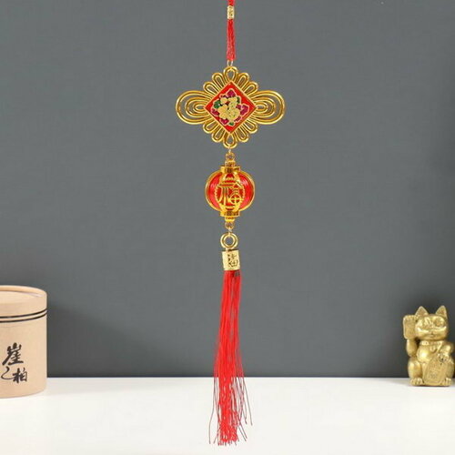 Подвеска пластик, текстиль "Китайский фонарик и узел - На счастье" 4.2х8.2х39 см