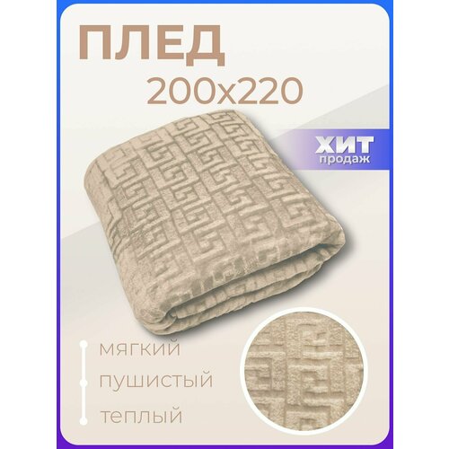 Плед велсофт бежевый евро размер 200х220 см, пушистое покрывало на кровать в спальню, плед на диван, накидка на кресло для дома, для дачи, детское