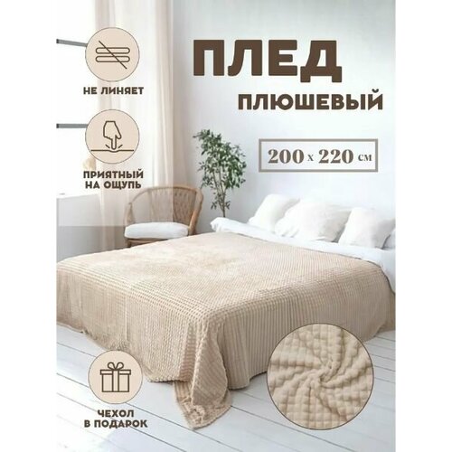 Плед евро Велсофт 200х220, плед-покрывало, бежевый