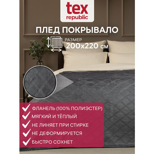 Плед TexRepublic Elite 200х220 см Евро, покрывало велсофт, темно-серый, мягкий, плюшевый с рисунком клетка