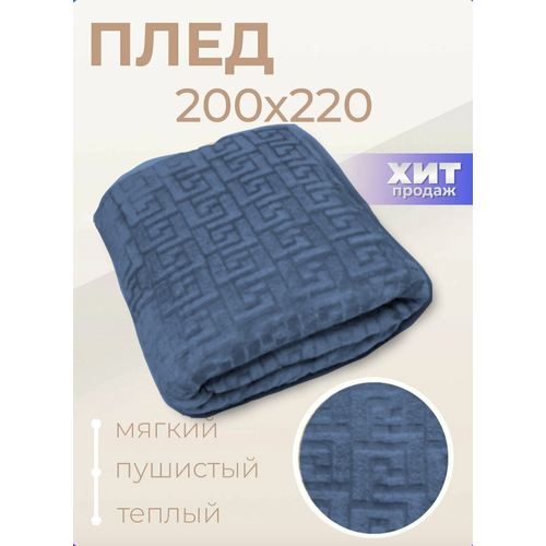 Плед плюшевый на кровать, диван / велюр / узор / евро 200х220 см / / в спальню, дом, для пикника, в машину
