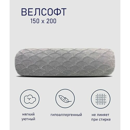 Мягкий плед Велсофт 150х200: уютное однотонное плед-покрывало пепельного цвета для кровати и дивана