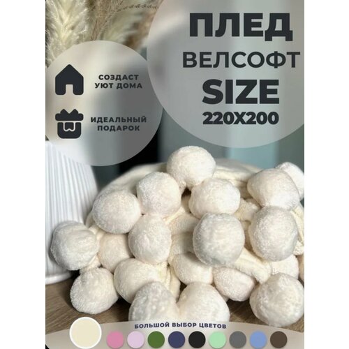 Плед велсофт молочный евро размер 200х220 см, пушистое покрывало на кровать в спальню, плед на диван, накидка на кресло для дома, для дачи