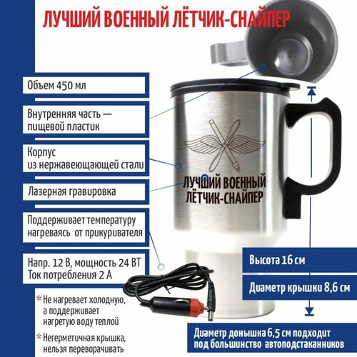 Подарки Термокружка "Лучший военный лётчик-снайпер" с подогревом от прикуривателя