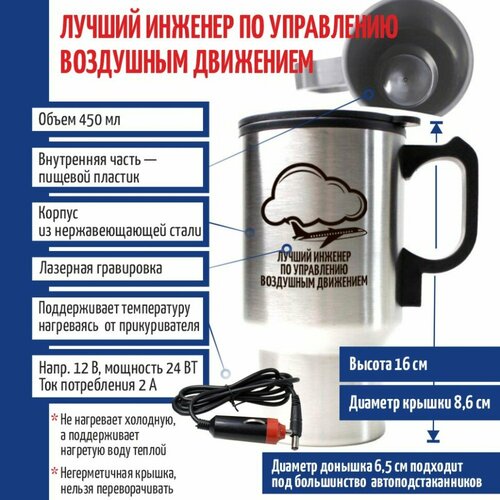 Подарки Термокружка "Лучший инженер по управлению воздушным движением" с подогревом от прикуривателя