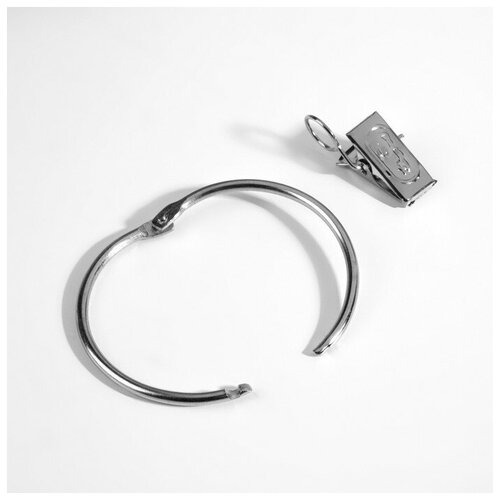 Арт Узор Набор для штор, кольцо разъёмное, d = 52/58 мм, 10 шт, зажим, 33 × 11 мм, 10 шт, цвет серебряный