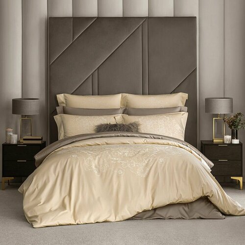 Блейк» украшает мелкий геометрический орнамент, напоминающий переплетения решетки. Он создан непосредственно на ткани с помощью сложного жаккардового плетения нитей. Пододеяльник выглядит изысканно и обладает легким рельефом поверхности. Благородная пепельно-серая гамма оттенков – хорошее решение для спальни мужчины.