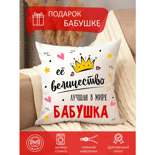 Подушка декоративная бабушке ее величество, диванная, с надписью, в подарок, съемный чехол