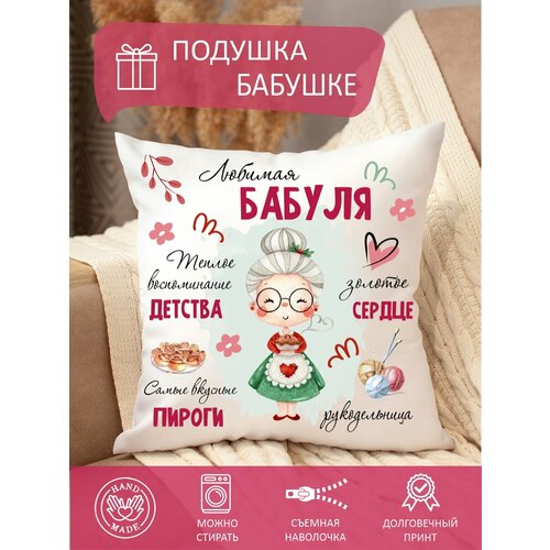Подушка с принтом в подарок бабушке, диванная, сувенирная, декоративная, 35х35