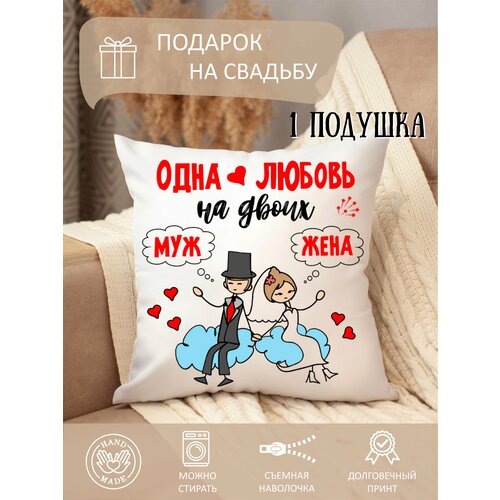 Подушка с принтом в подарок на свадьбу жениху невесте мужу жене молодоженам, сувенир на свадьбу 1 шт