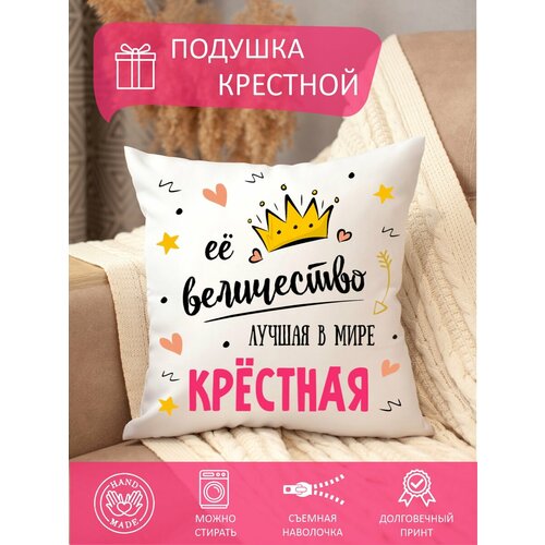Подушка декоративная крестной маме, с надписью, с принтом, диванная