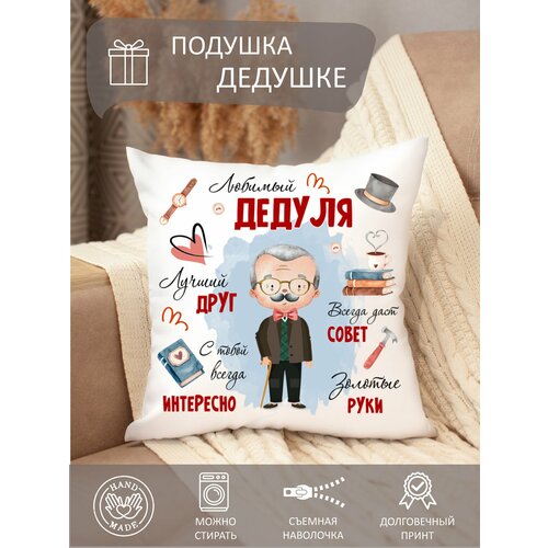 Подушка декоративная дедушке, с принтом, диванная, с надписью, съемная наволочка