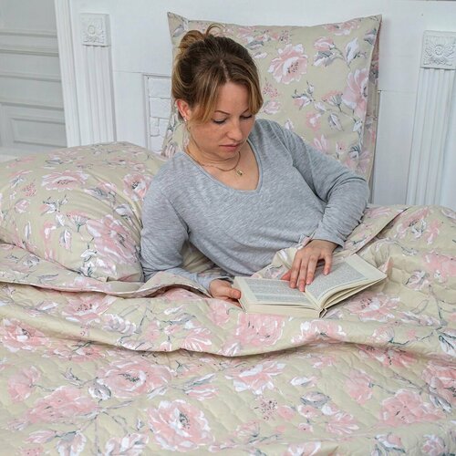 Комплект постельного белья одеяло-покрывало 2-спальный спал спалыч бязь Цветы бежевый/ наволочки 70*70/на дачу
