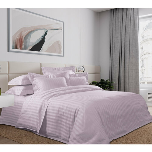 Постельное белье Legends евростандарт, страйп-сатин, Розовый крем