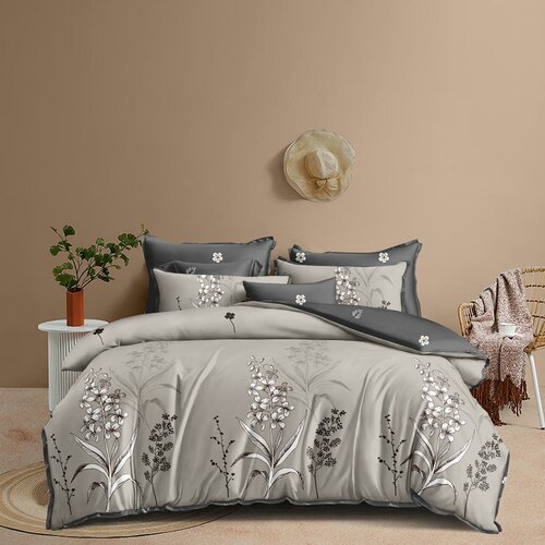 Постельное белье Asabella 100% тенсель люкс 2137-6 евро, cерый/фисташковый