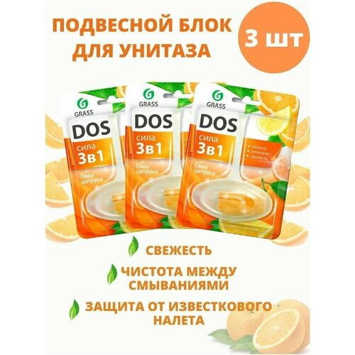 Подвесной блок для унитаза DOS 3 в 1 "Сила цитруса" 3 шт