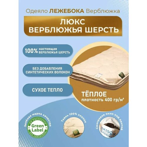 Одеяло ЛЕЖЕБОКА Верблюжка Люкс 172х205 из верблюжьей шерсти, всесезонное, 3943 100038649114