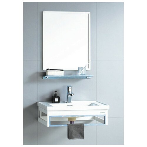 Зеркало без подсветки. Раковина фаянс с переливом. Полочки в комплекте.