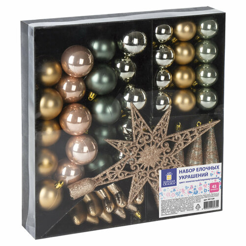 Шары новогодние ёлочные "Pearl River" набор 43 предмета, пластик, золото/перламутр, золотая сказка, 591129