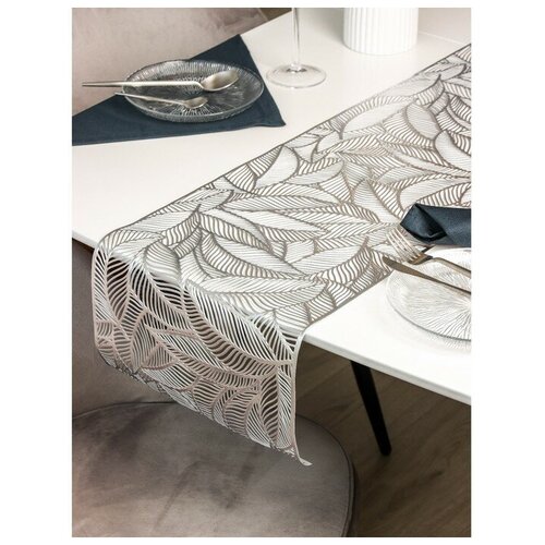Дорожка на стол Доляна «Листопад», 30×150 см, цвет серебряный