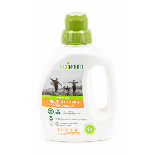 Гель для стирки универсальный EcoRoom / ЭкоРум Гипоаллергенный жидкий для всех видов тканей и детского белья в бутылке 1л