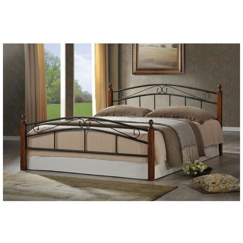 Кровать TetChair AT-8077 двуспальная, размер (ДхШ): 210х144.4 см, спальное место (ДхШ): 200х140 см, цвет: коричневый/черный