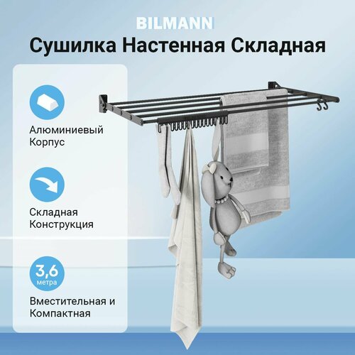 Сушилка для белья Bilman, настенная, черная, 78 см, 8 сушильных зон, складная, металл