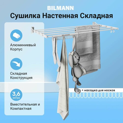 Сушилка для белья настенная складная BILMANN, сушка в ванную для одежды, ширина 72 см