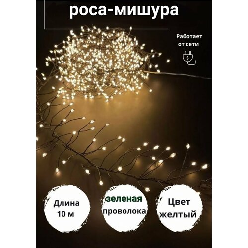 Гирлянда светодиодная роса мишура капельки фейерверк 20 метров , Светодиодная. Цвет теплый белый (жёлтый) провод зелёный Home (высш. качество )