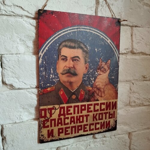 Табличка из дерева, интерьерная 19х27 см. "От депрессии спасают."