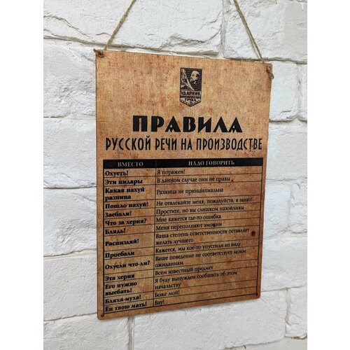 Табличка деревянная, интерьерная 19х27 см. Правила русской речи