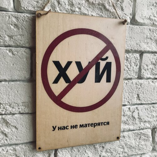 Табличка интерьерная, деревянная 19х27 см. "У нас не матерятся"