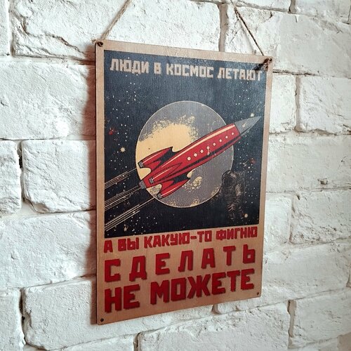 Табличка интерьерная, деревянная 19х27 см. "Люди в космос летают 2"