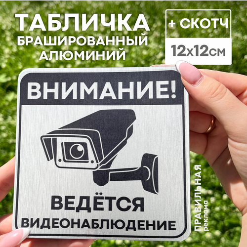 Табличка " Ведется видеонаблюдение " 12х12 см. Брашированный алюминий +скотч (