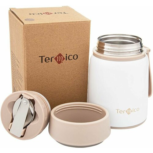 Термос для еды с широким горлышком 0,53 л "Termico", с ложкой, белый белый, бежевый