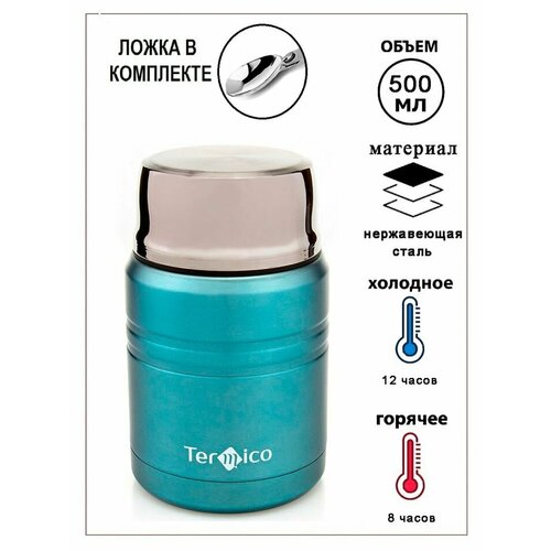 Термос для еды крышка Termico 250095, 0.5 л, голубой/серебристый