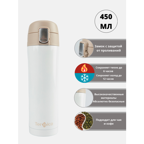 Термос бутылка для чая и кофе "Termico", 450 мл, белая
