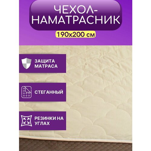 Наматрасник стеганый с резинками по углам "Карамель" 190x200 см/ 190*200/ 190на200/ Чехол на матраса/диван