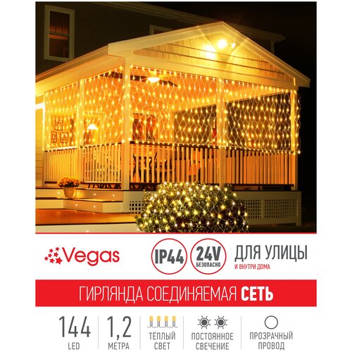 Гирлянда Vegas Сеть световая 55030-34, 1.2 х 1.5 х 1.2 м, 1.2 х 1.5 м, 144 лампы, теплый/прозрачный провод