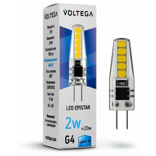 Лампа светодиодная Voltega G4 2W 4000K прозрачная VG9-K1G4cold2W 7145